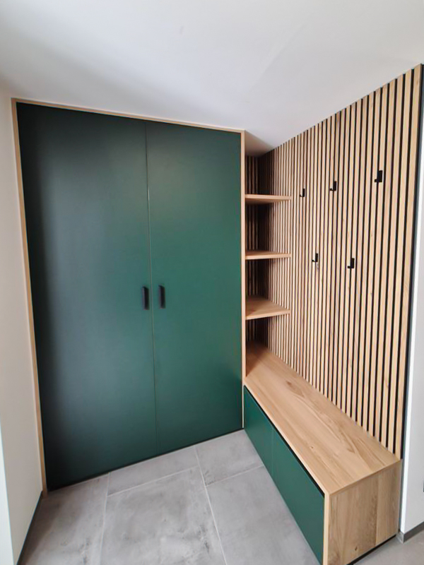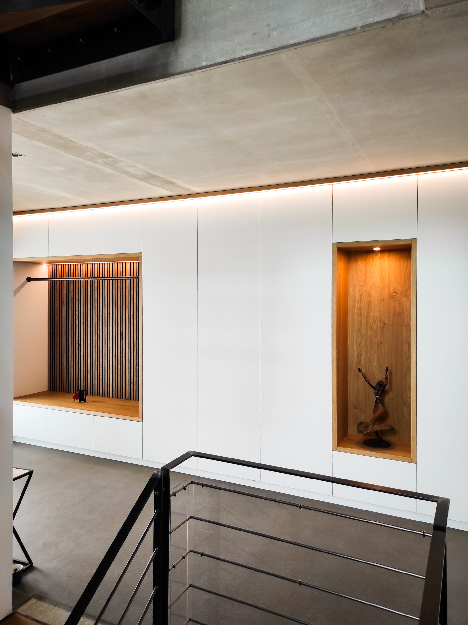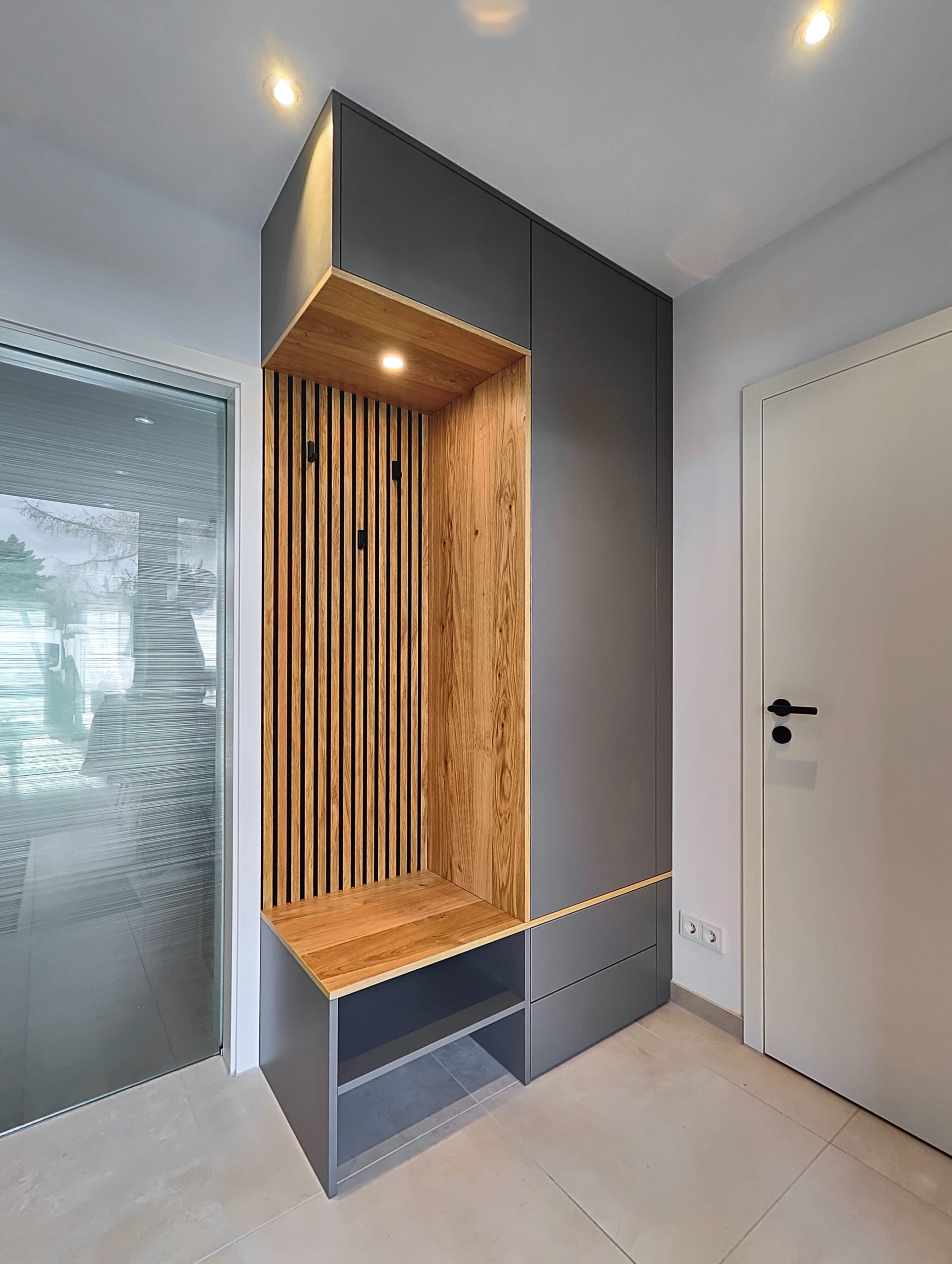 Whether you need storage for jackets, shoes, bags, or sports gear – a custom wardrobe cabinet brings both order and style to your entryway. We make use of every niche, adapt to sloped ceilings, walls, or narrow hallways, and combine cabinet systems, benches, mirrors, drawers, or shelves exactly the way you need them.