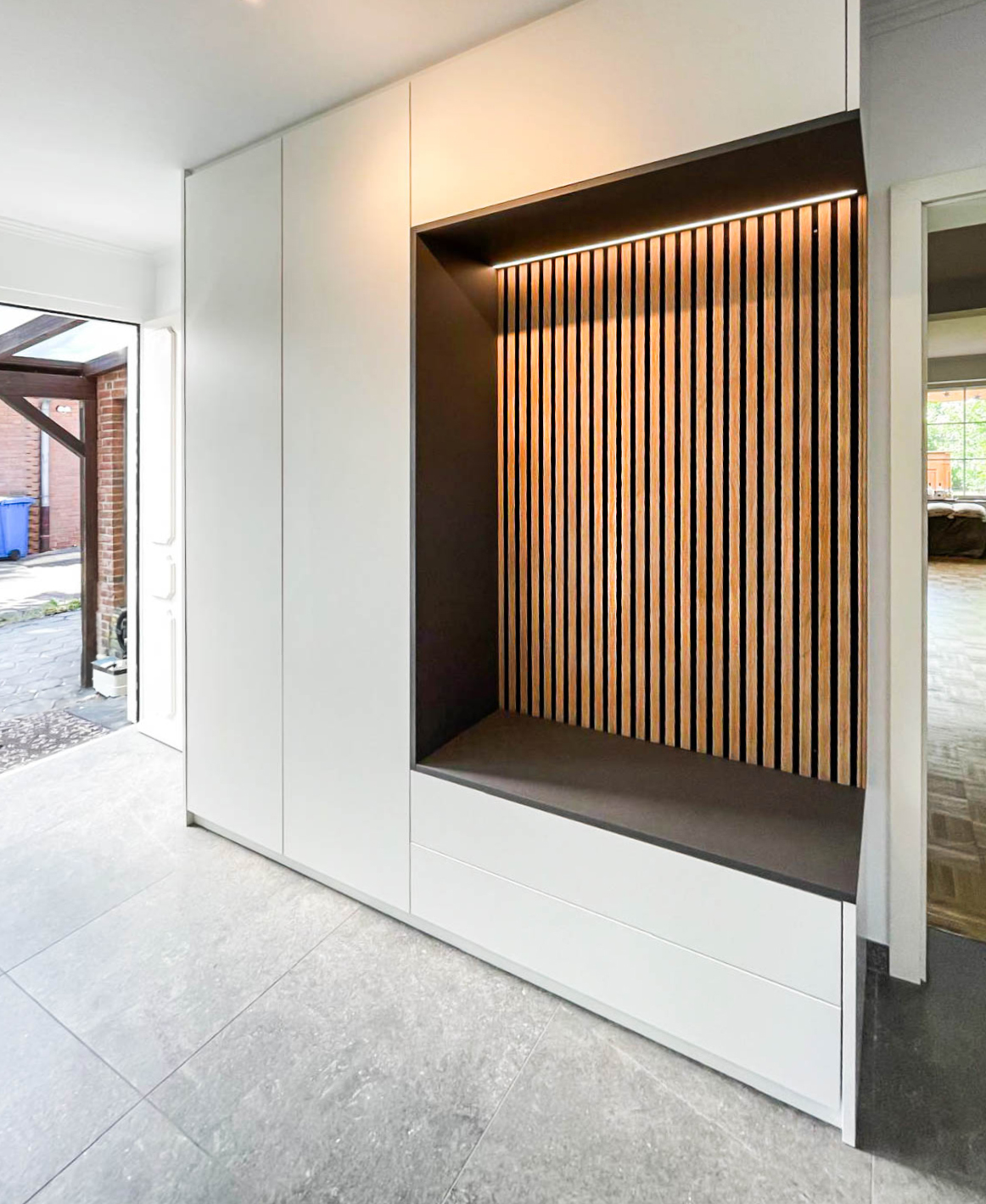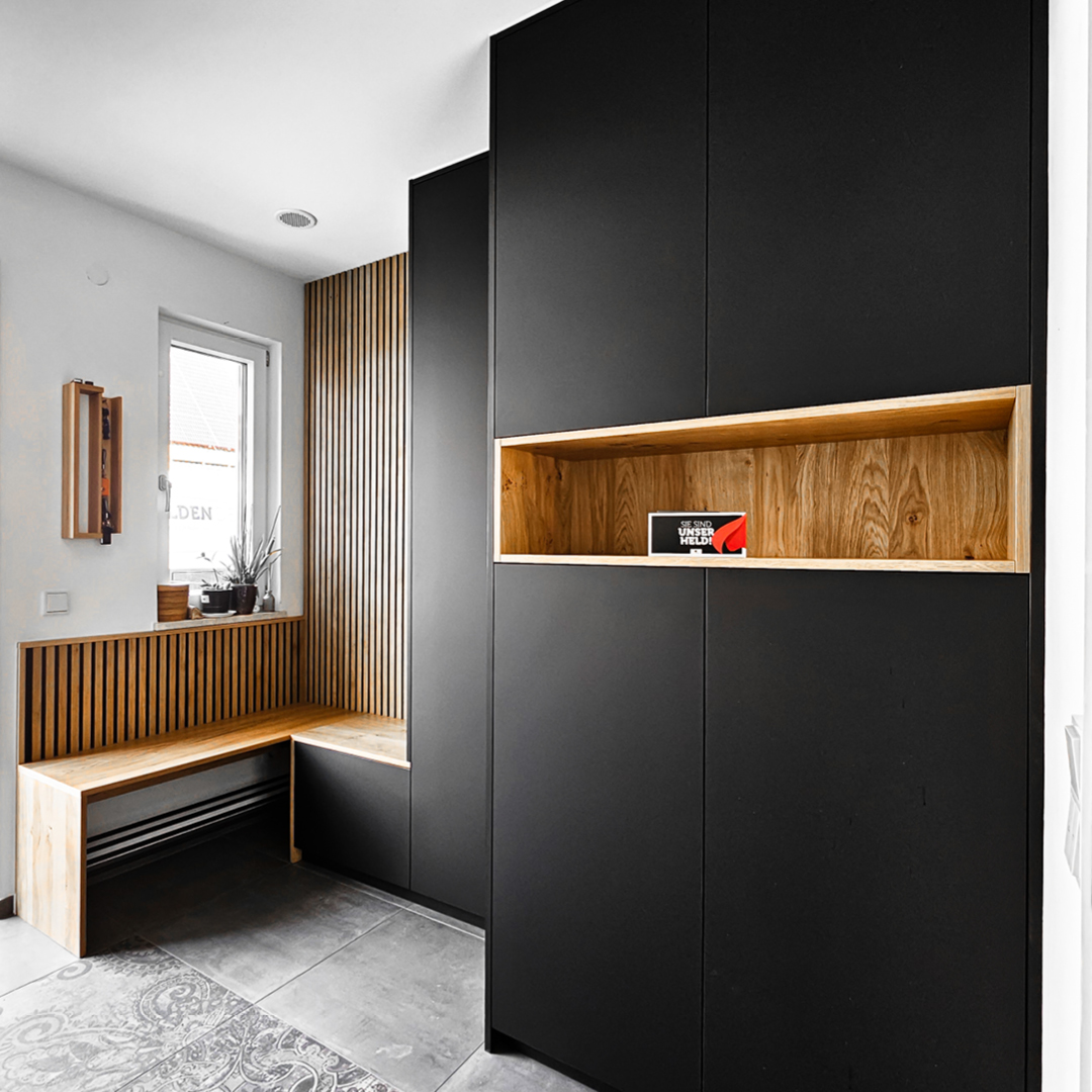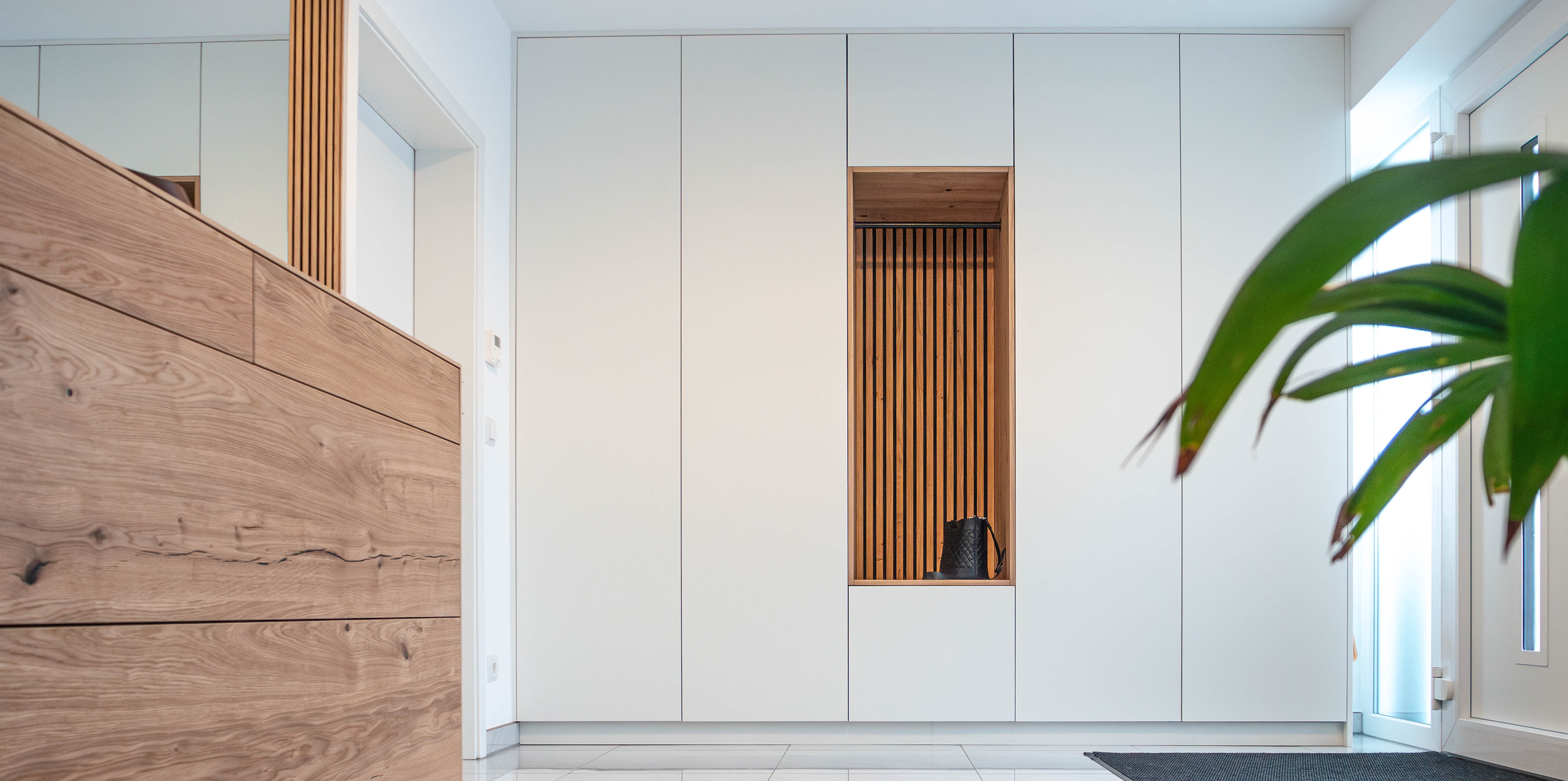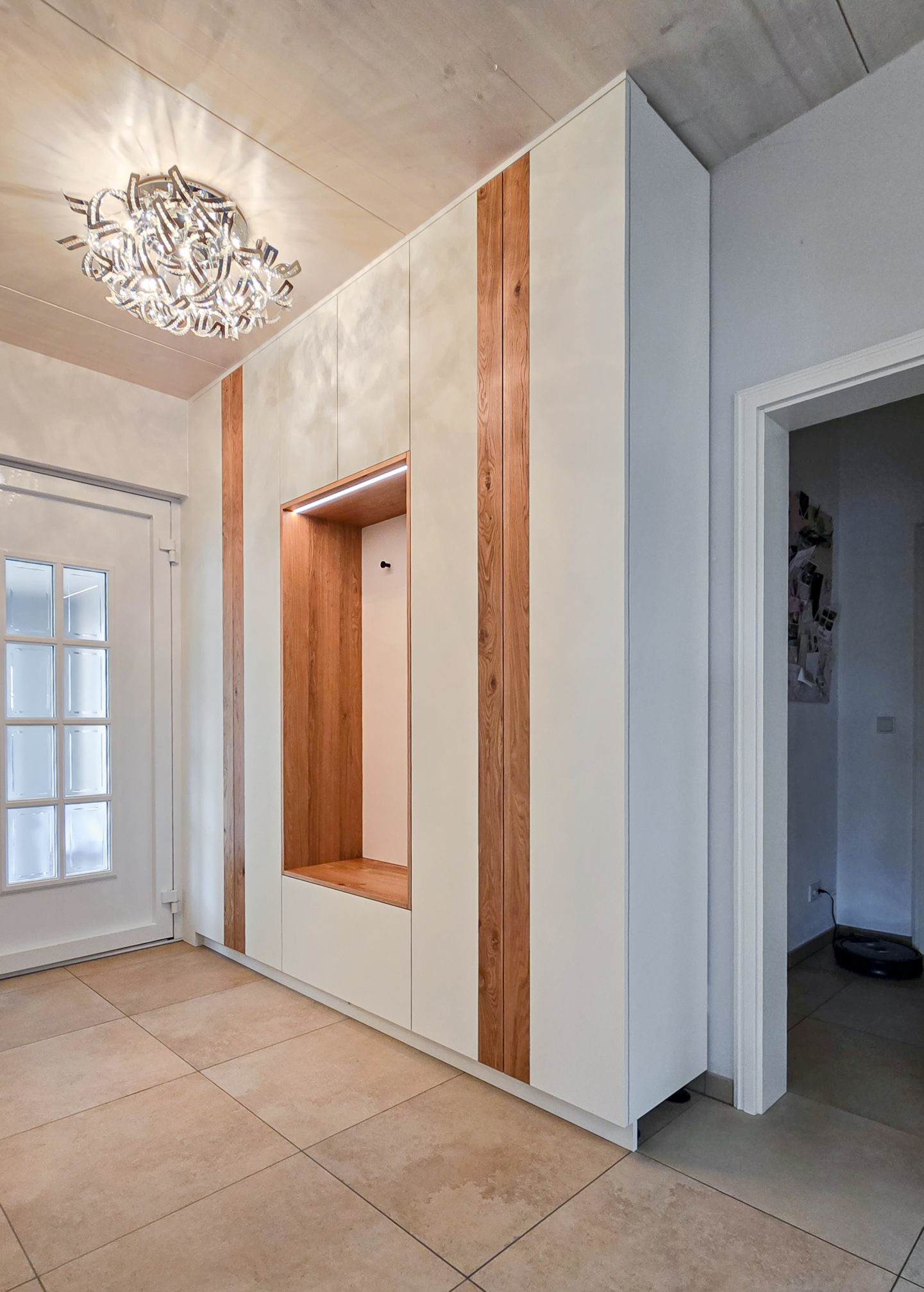 With our experience from countless projects across Germany, Austria, and Luxembourg – from modern hallway wardrobes to classic custom-built entryway furniture – we create long-lasting solutions you’ll enjoy using every day. Of course, that includes personal consultation, planning, and installation by our cabinet experts.