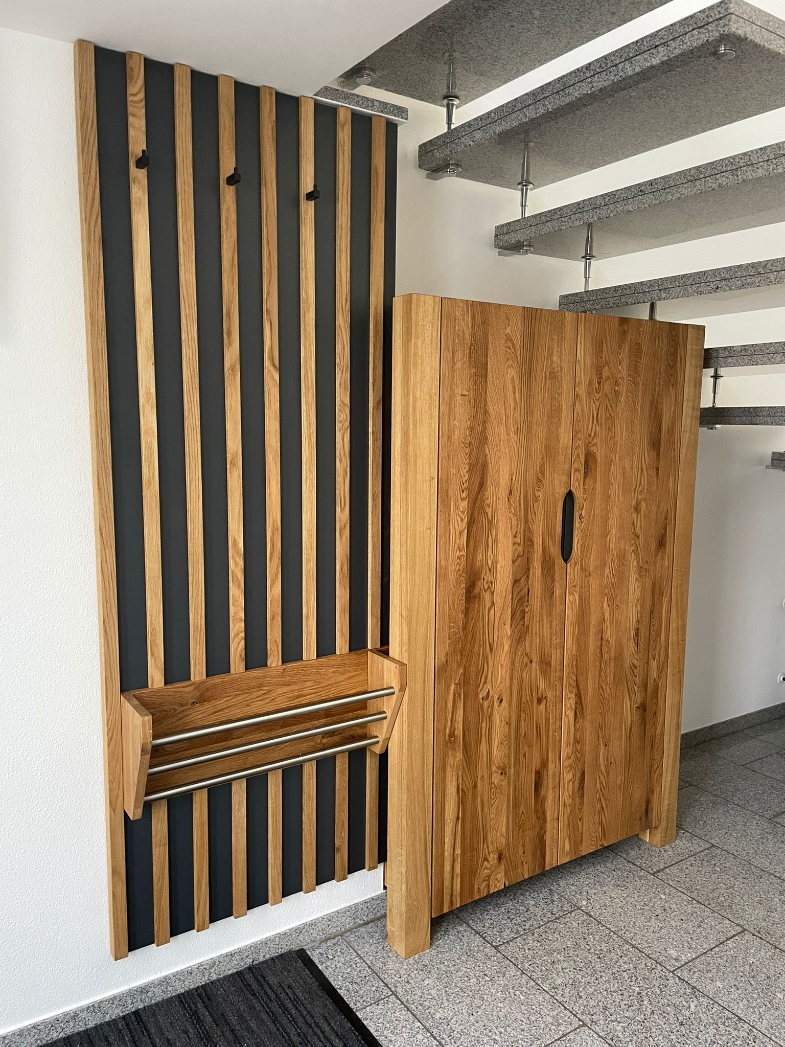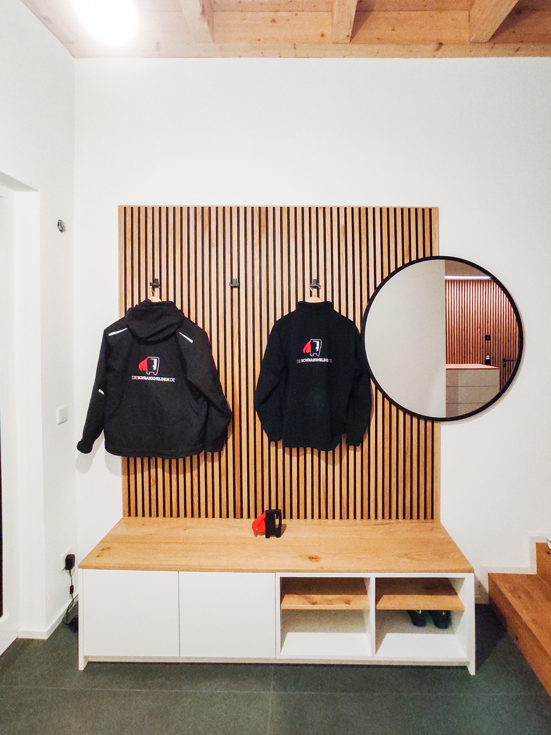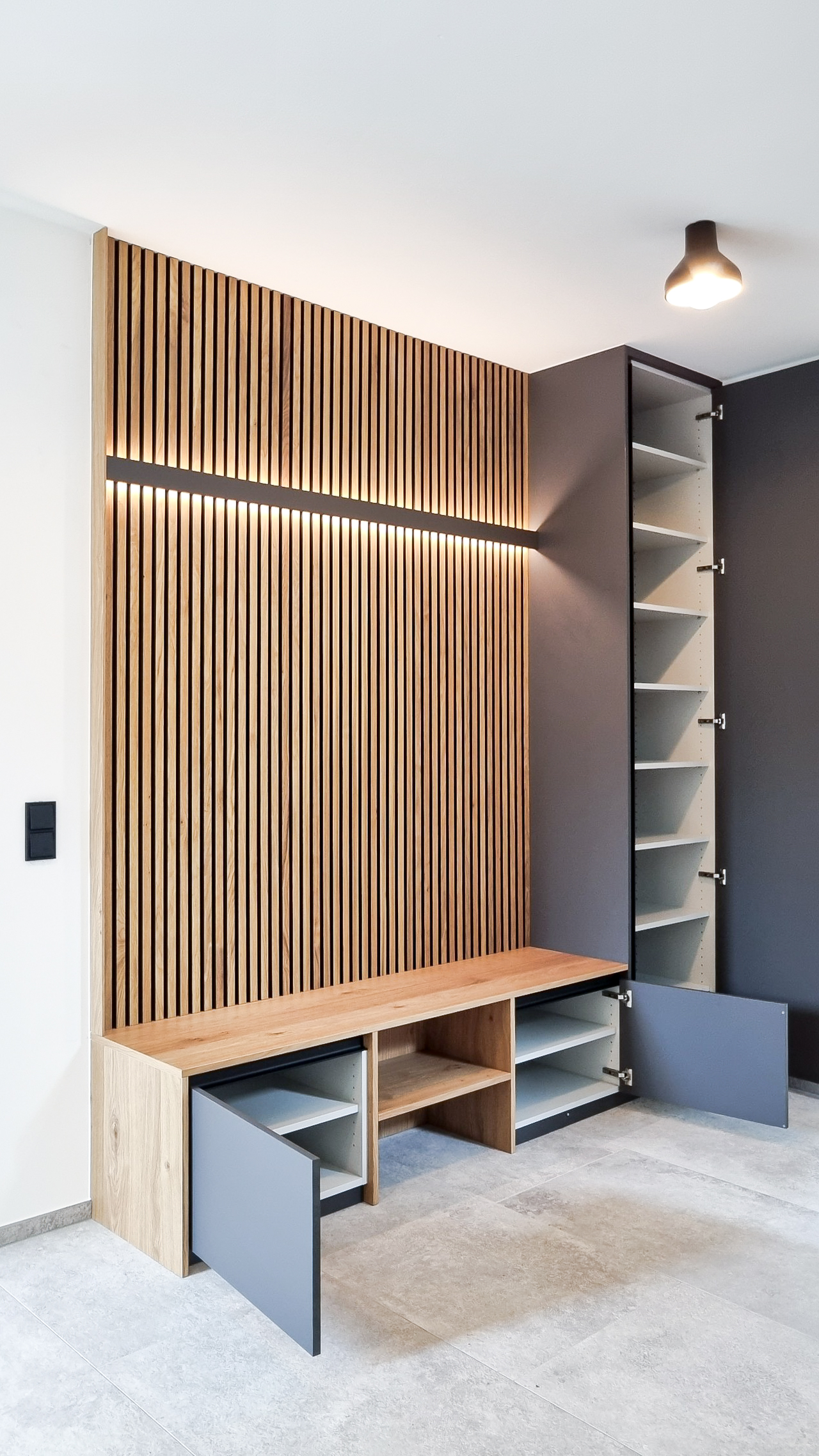With our experience from countless projects across Germany, Austria, and Luxembourg – from modern hallway wardrobes to classic custom-built entryway furniture – we create long-lasting solutions you’ll enjoy using every day. Of course, that includes personal consultation, planning, and installation by our cabinet experts.