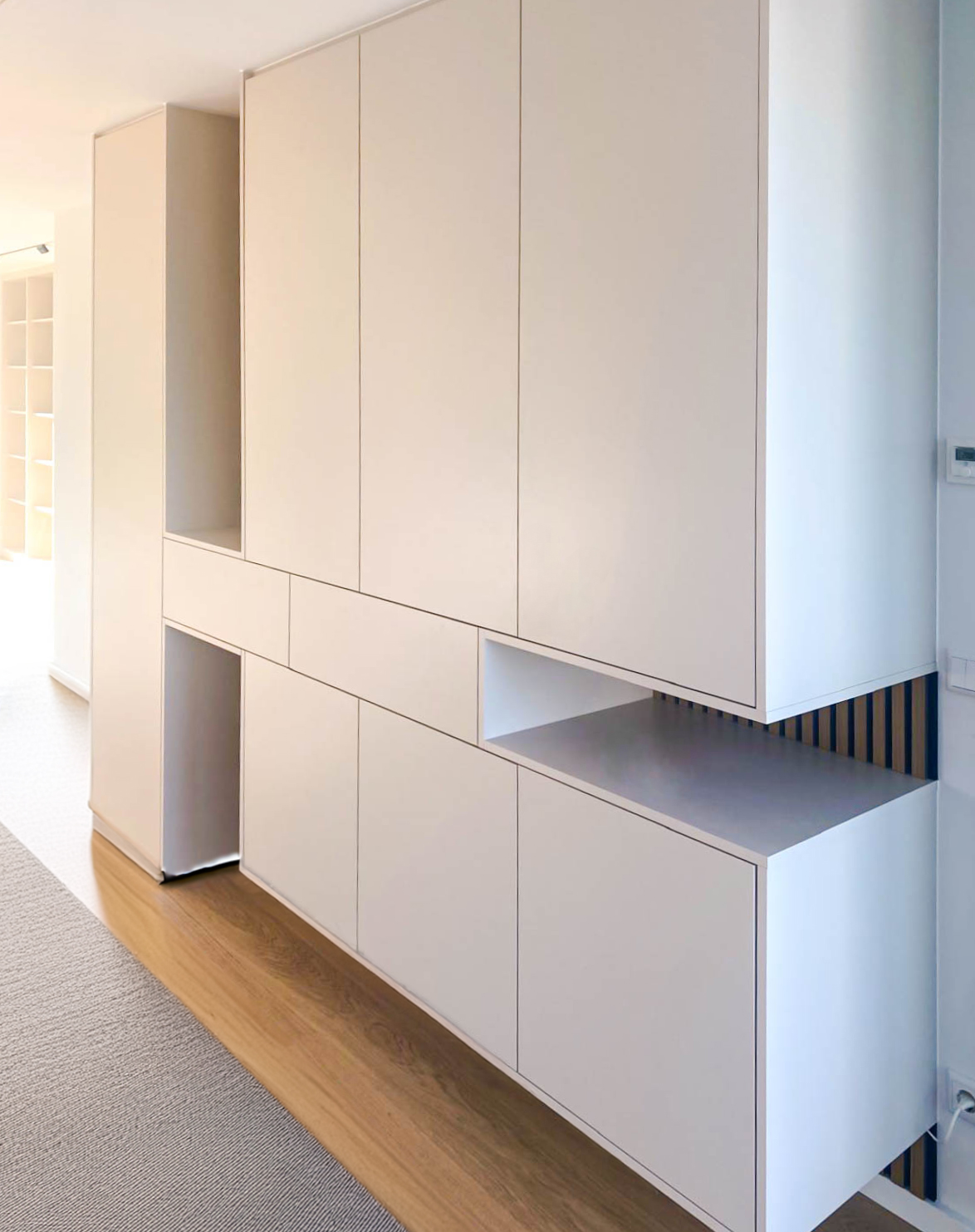 These custom wardrobe cabinets make efficient use of the available space while enhancing the overall appearance of the entryway.