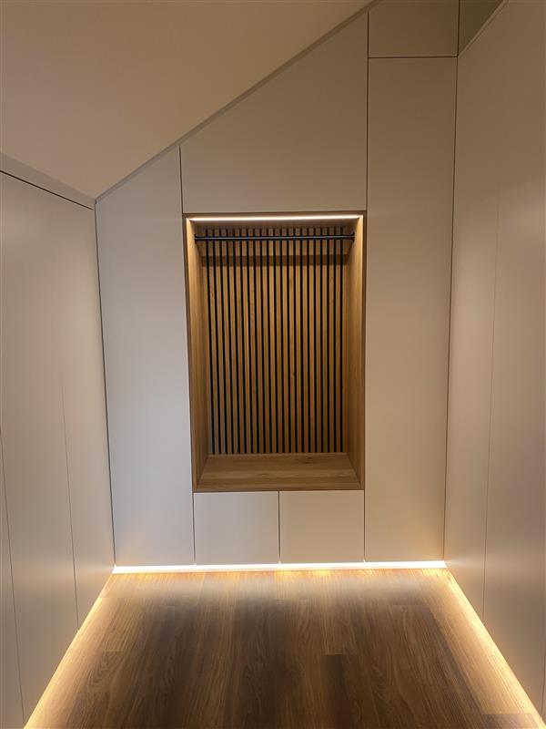 Basically all of them. We particularly often install built-in cupboards in hallways, custom-made wall cupboards, walk-in wardrobes, living room cupboards, and individual solutions under stairs and sloping ceilings. Whether you have a large room or a tricky corner, your custom-made cupboard will be designed specifically for your situation.