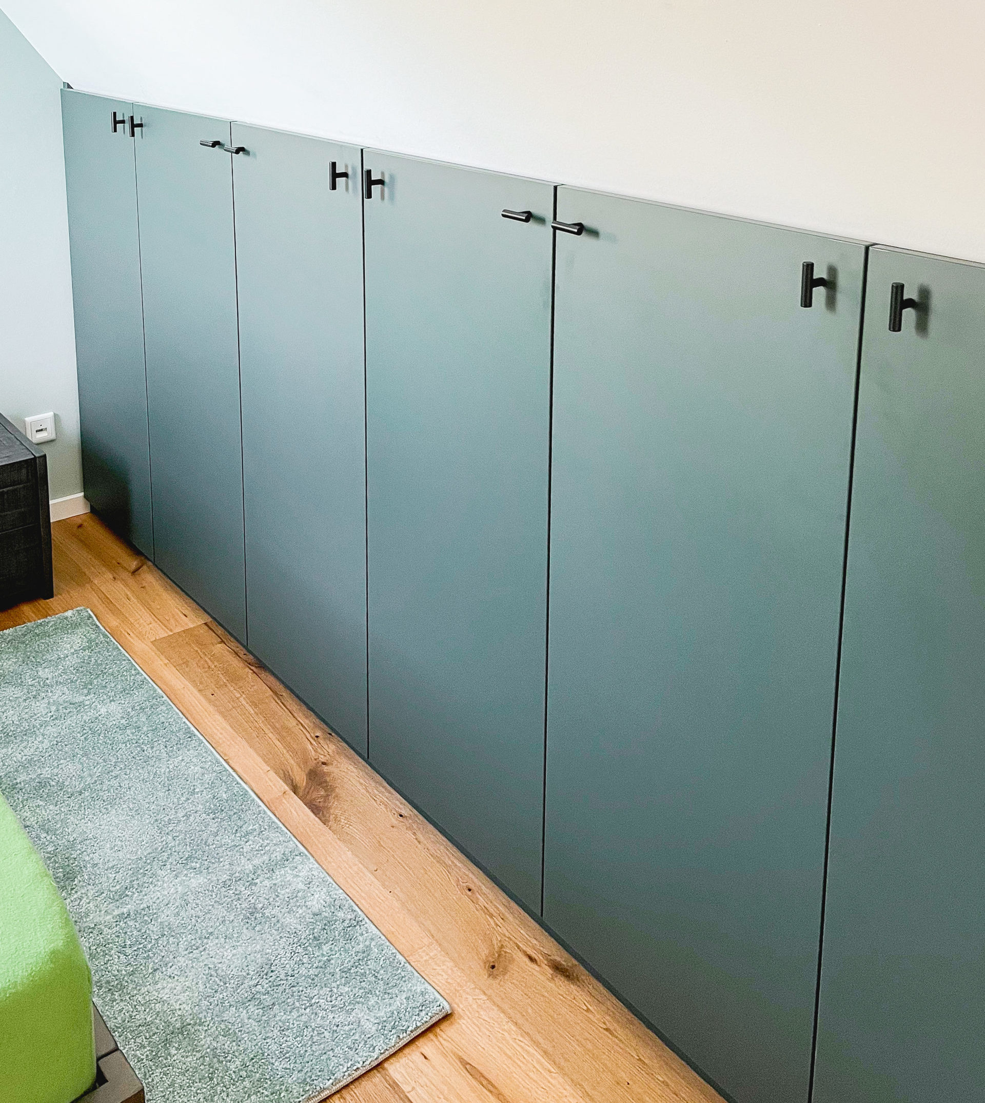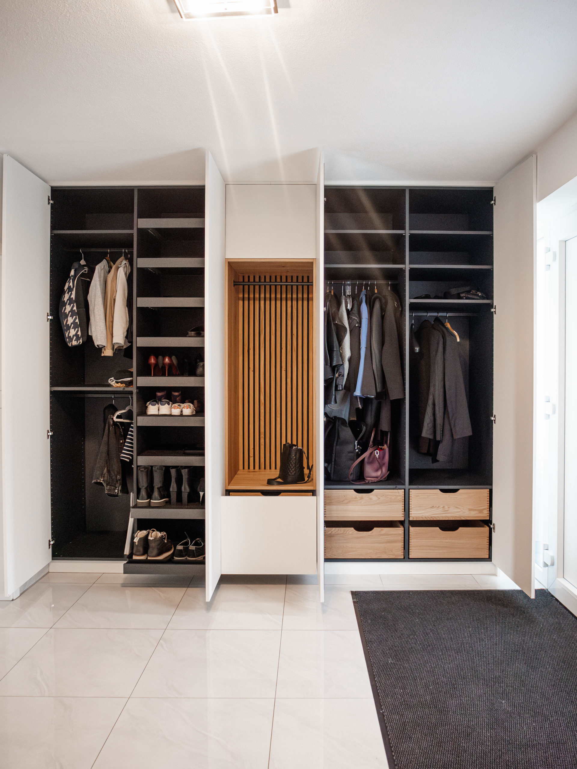 With a wide selection of high-quality surfaces, modern colors, handle variants and materials, your custom-made wardrobe will be a design highlight. Whether flush with the wall and handleless or with homely accents such as wood – you design every detail yourself. To the millimeter. Expressive. According to your taste.