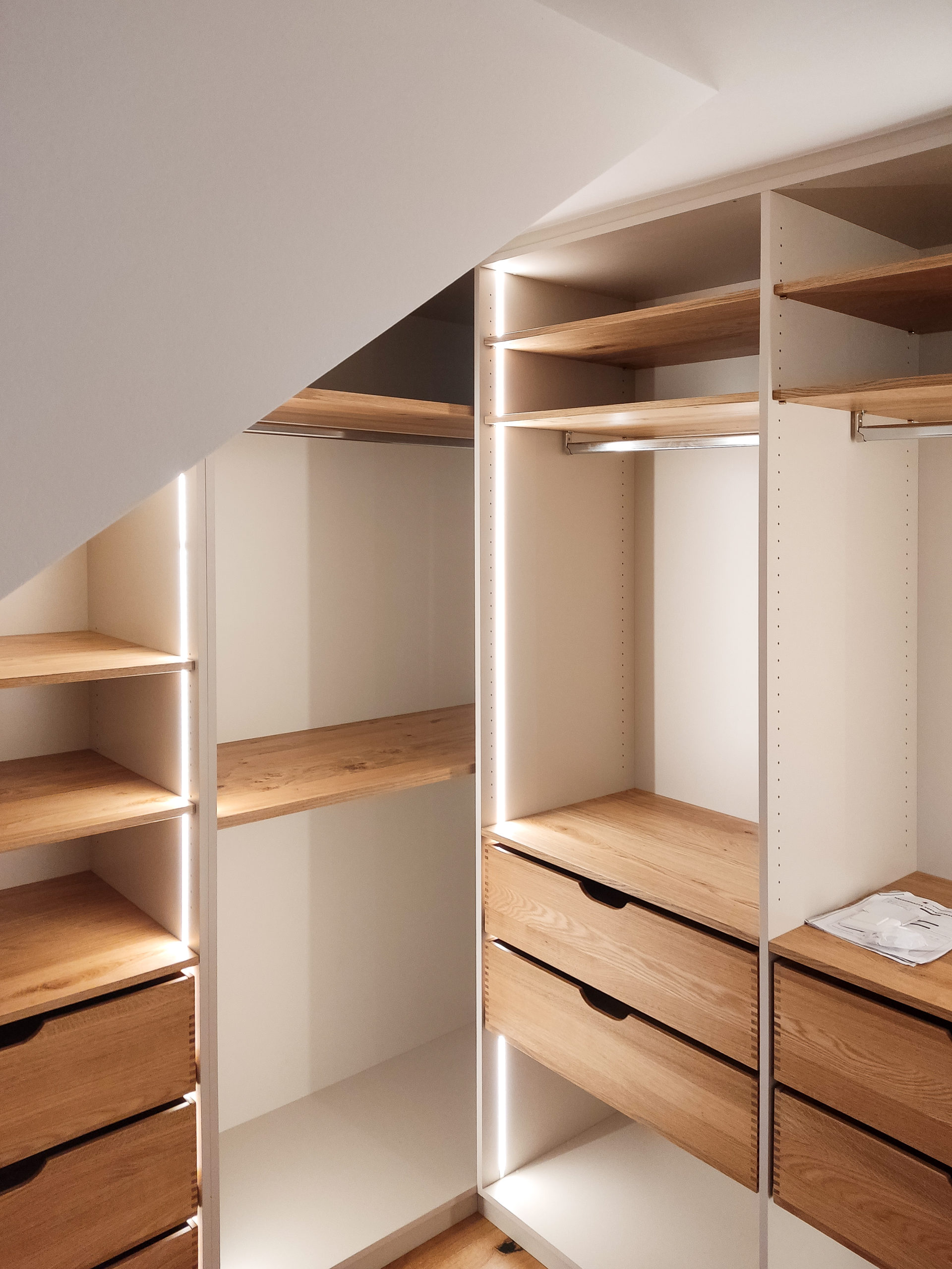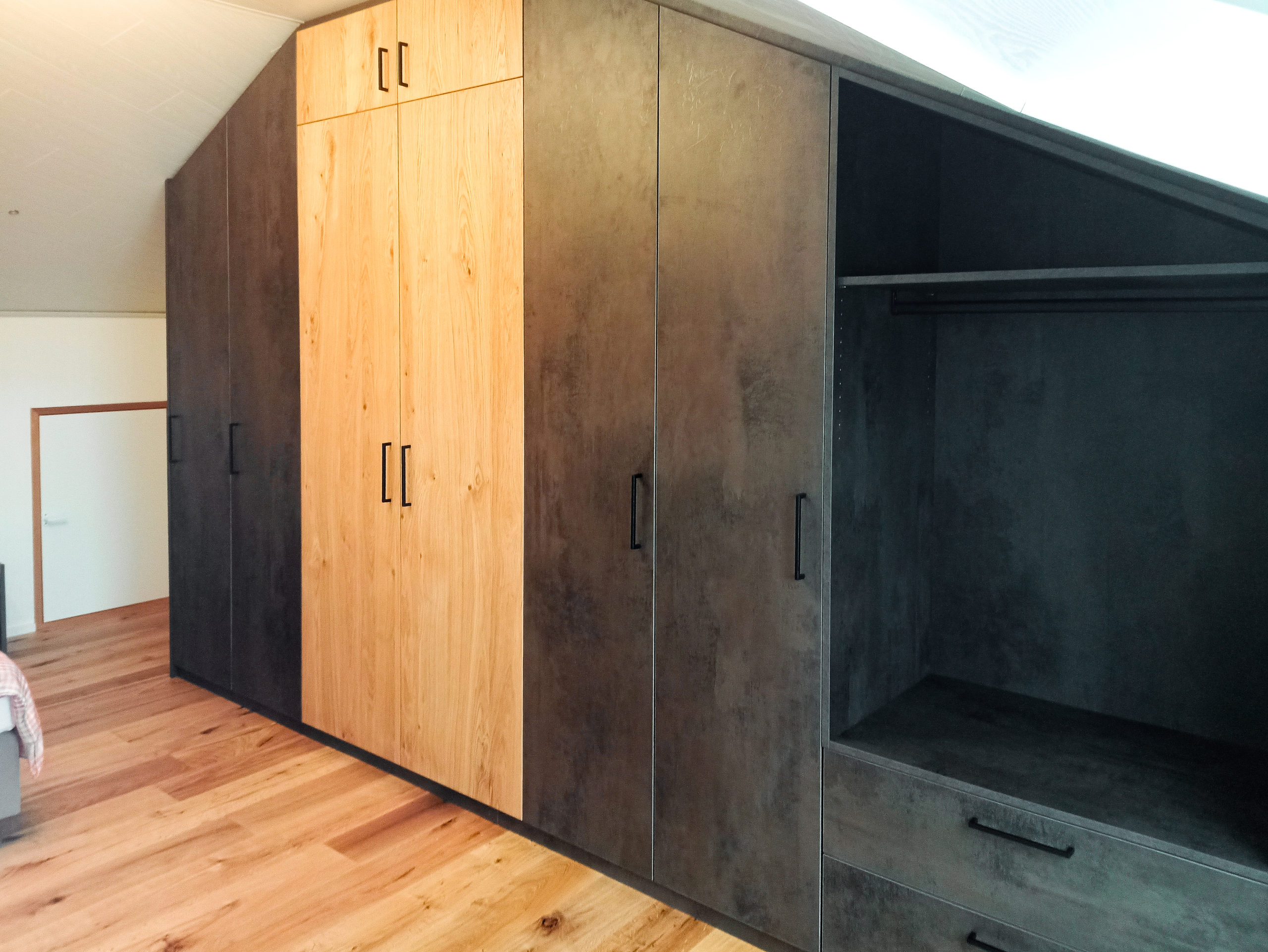 A custom-made sloping roof cabinet turns even awkward corners and sloping walls into practical storage space with style. Instead of settling for standard solutions, you get a tailor-made design – individually designed, manufactured with millimeter precision, and made to give you many years of enjoyment.