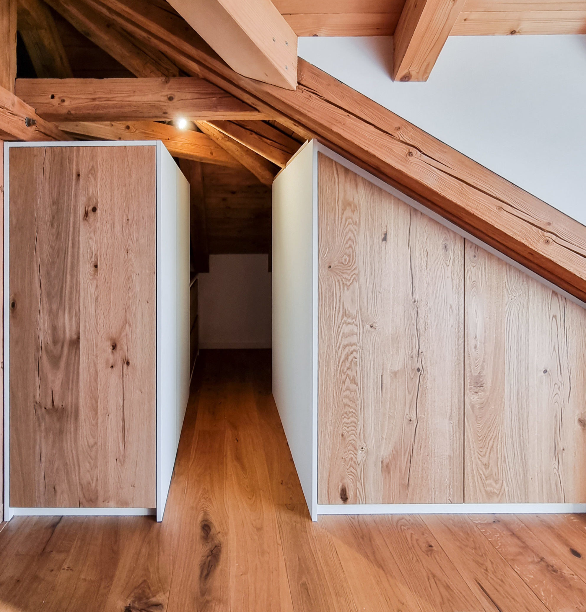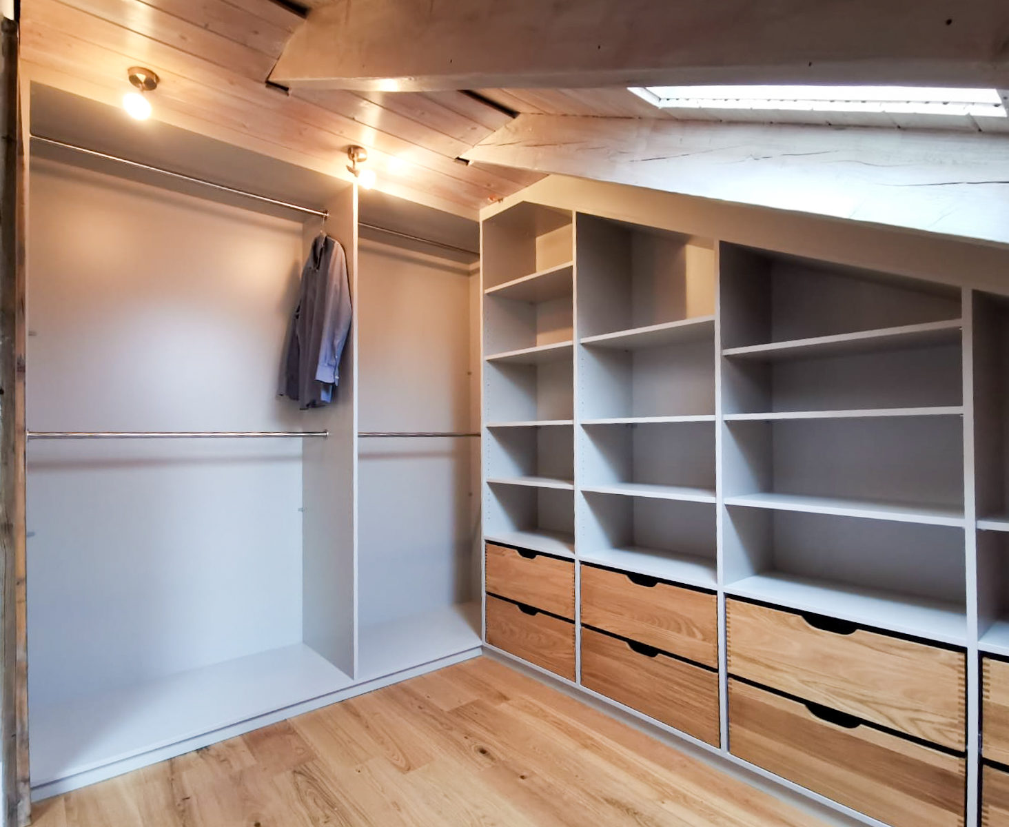 A custom-made sloping roof cabinet is therefore the ideal solution for making optimal use of the limited space under sloping ceilings while meeting both functional and aesthetic requirements. This piece of furniture is specially designed and manufactured to meet your needs, giving your room maximum utility and beauty.